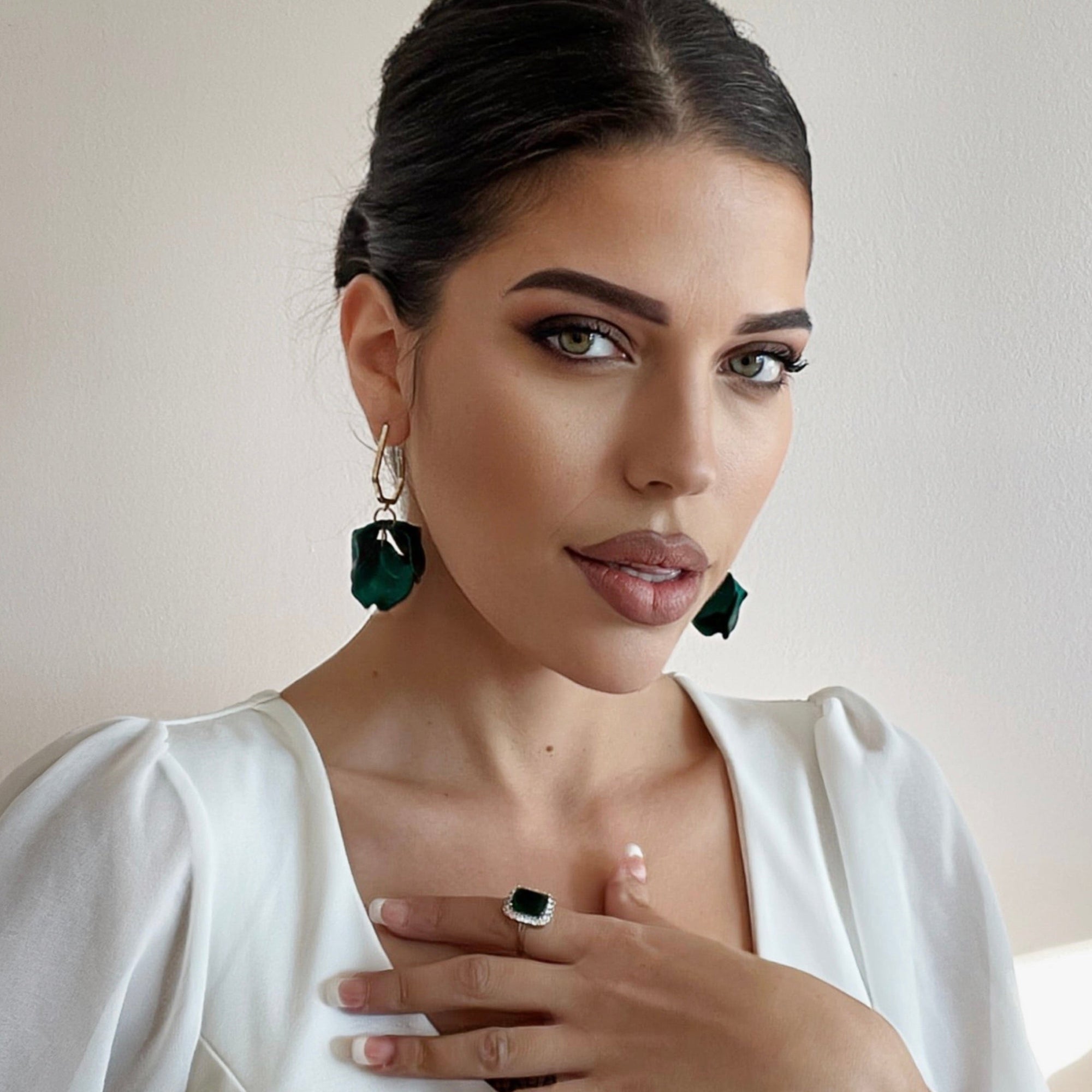 Juni Mid Green Petal Earrings