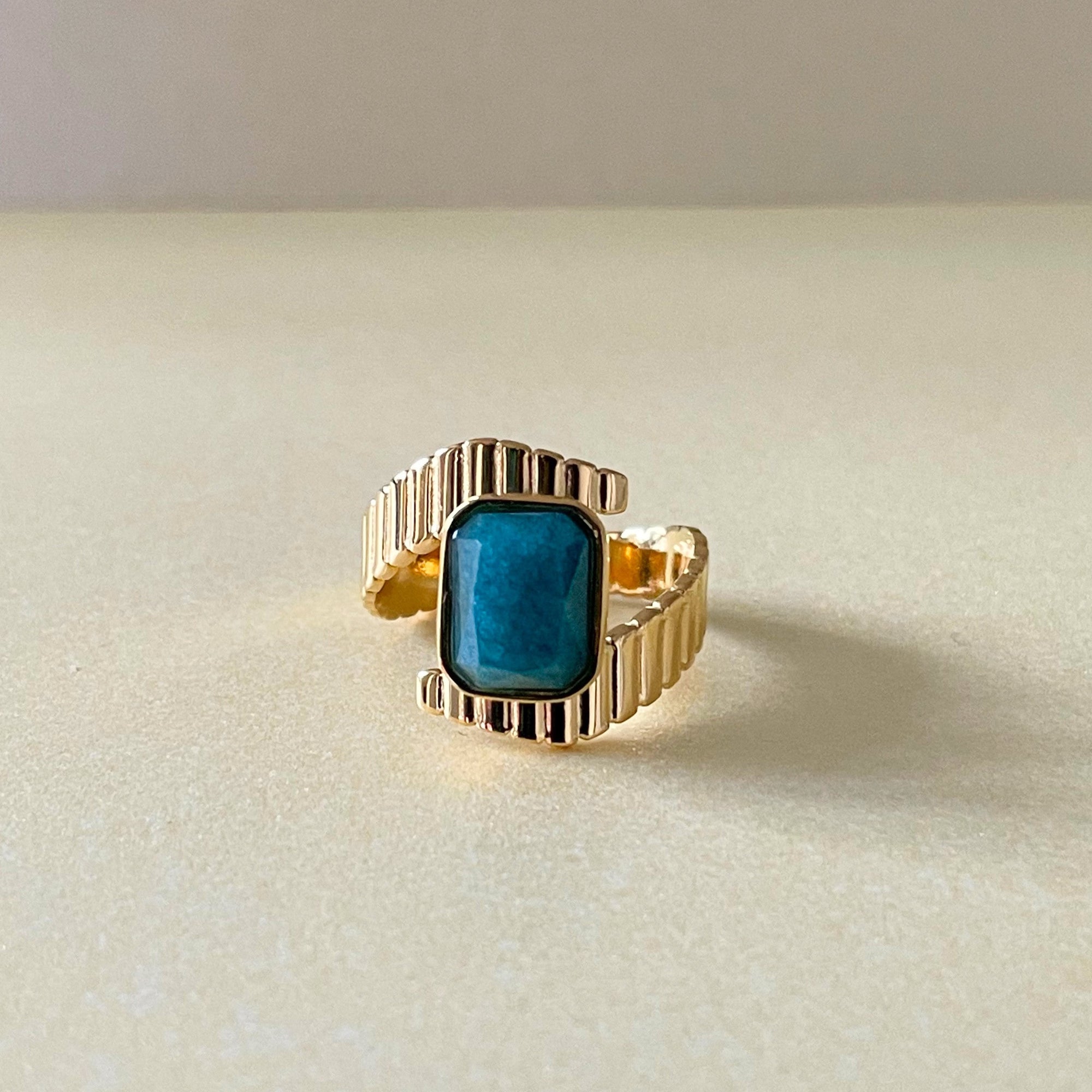 Riva Luxe 18k Gold Plated Apatite Stone Deco Ring