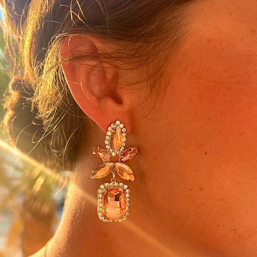 Analucia Peach Statment Jewel Earrings