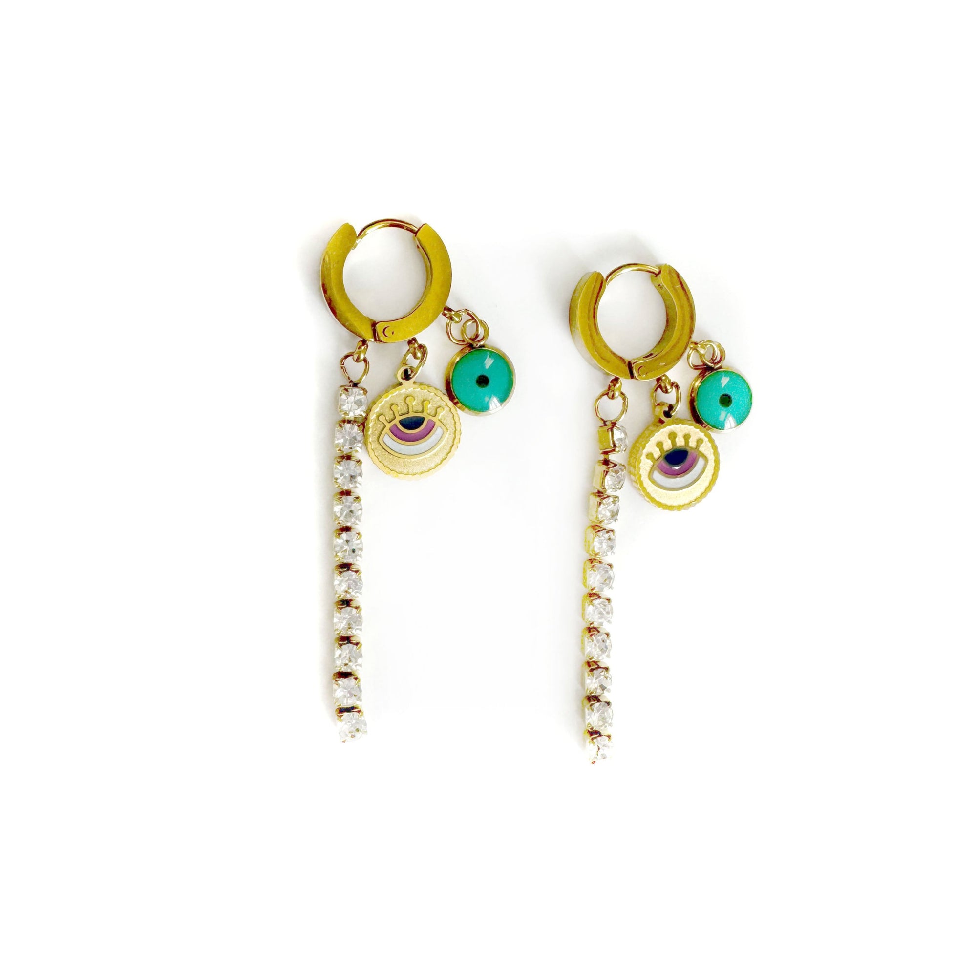 Leelee Luxe 18k Gold Plated Jewelled Evil Eye Charm Dangle Hoop Earrings
