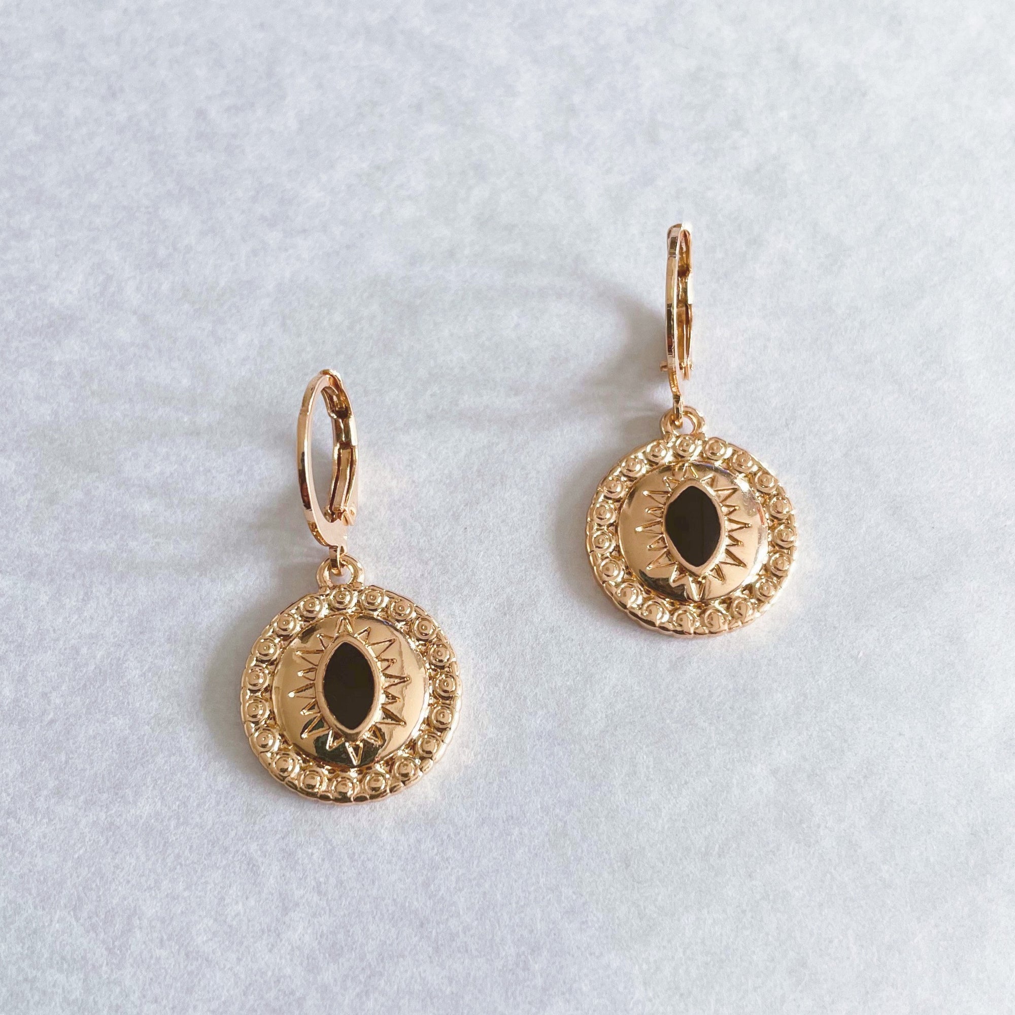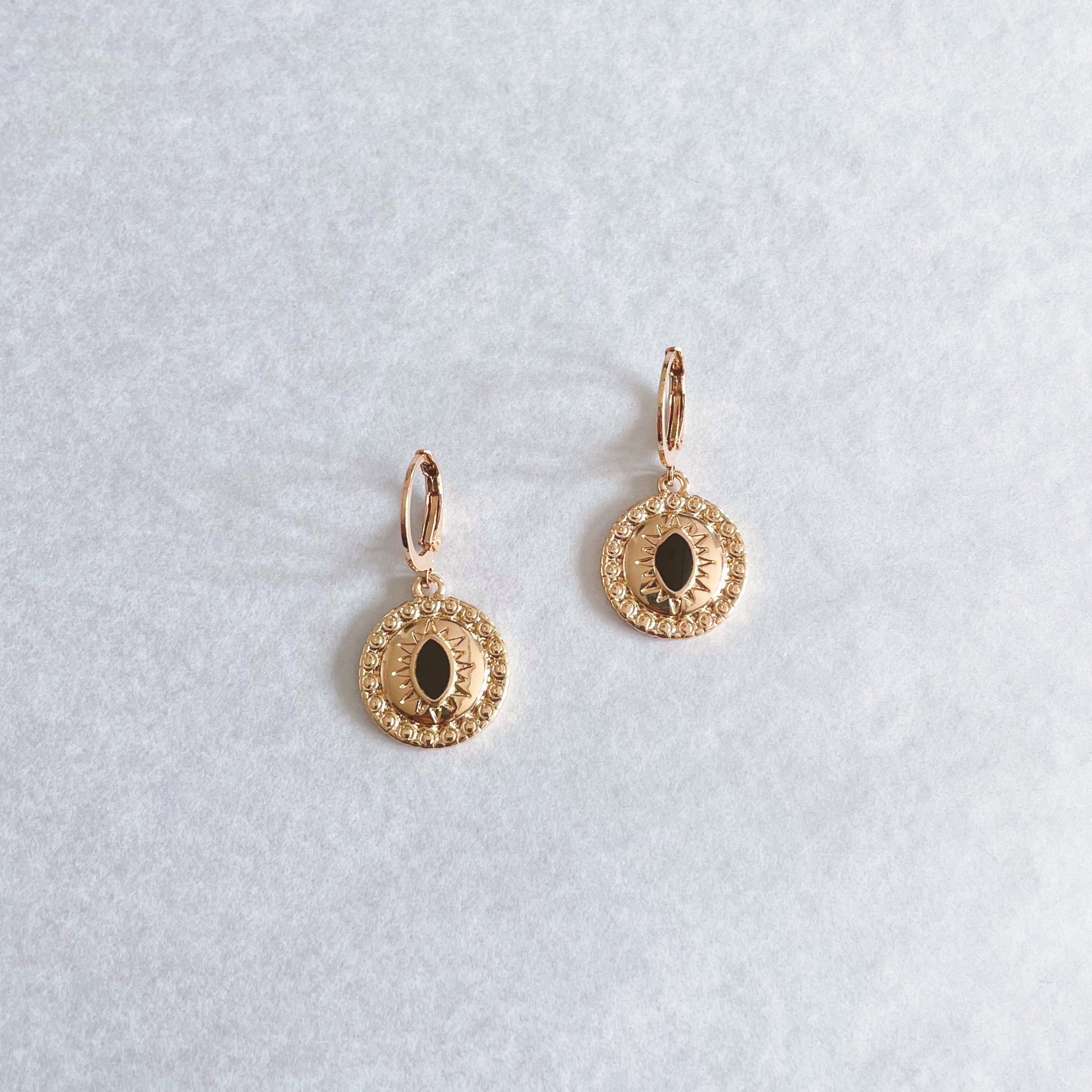 Yasmin Black Lucky Evil Eye Charm Huggies