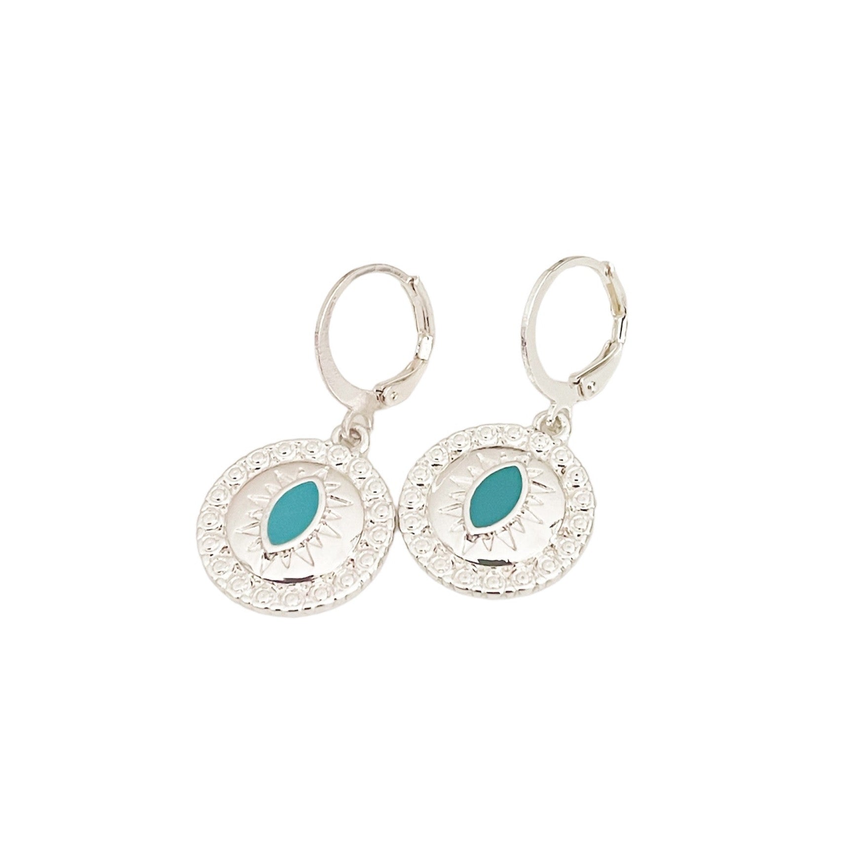Yasmin Silver Lucky Evil Eye Charm Huggies