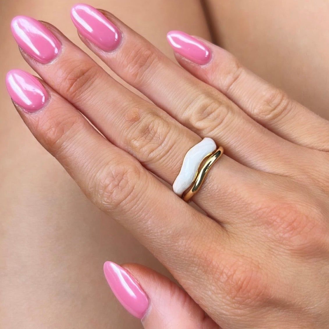 Jolie Wide Gold and Ivory Ring