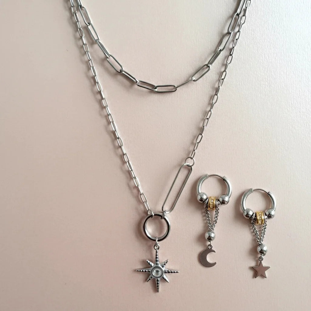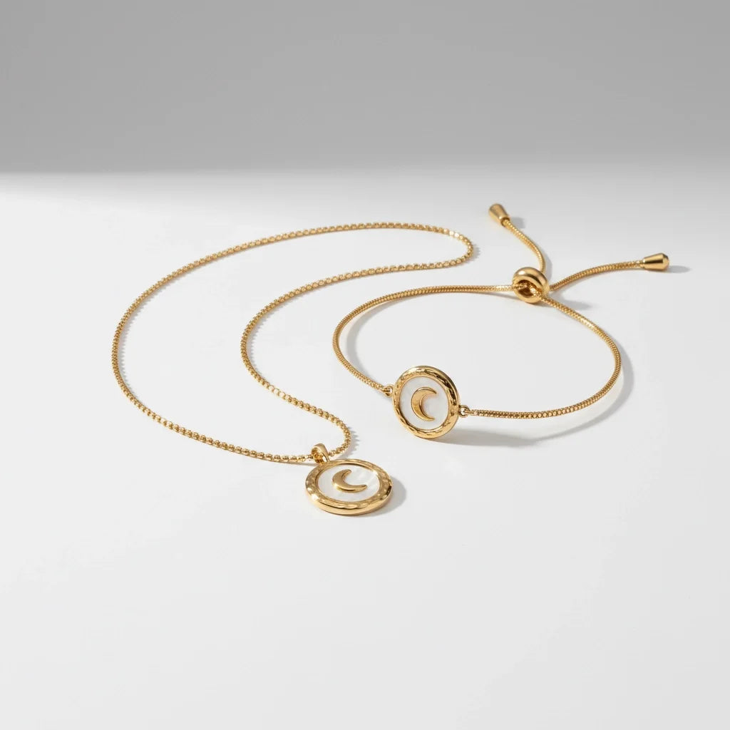 Aetheria Luxe 18k Gold Plated Crescent Moon Necklace & Bracelet Set