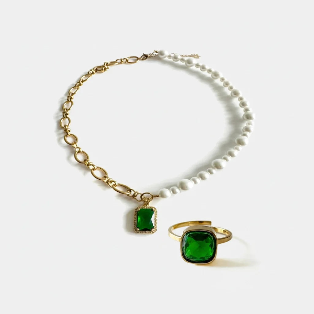 Green Goddess 18k Gold Plated Earrings & Ring Bundle